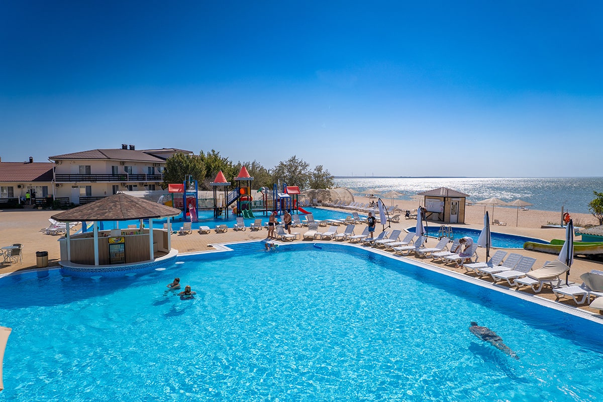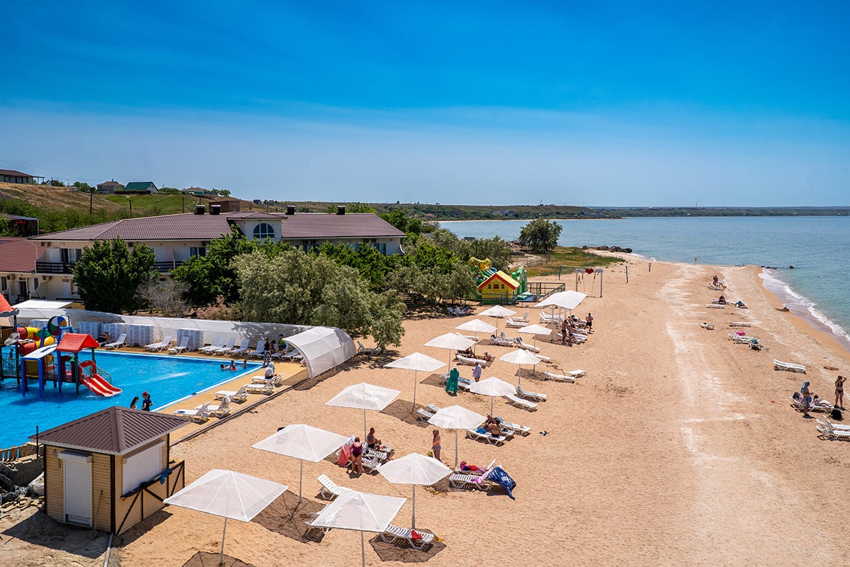 - Расположен на самом берегу Азовского моря