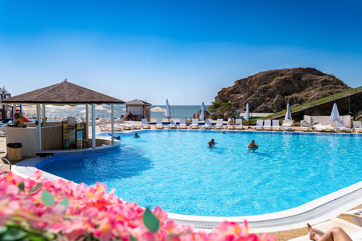 - Теплый бассейн с лаундж-зоной на берегу моря