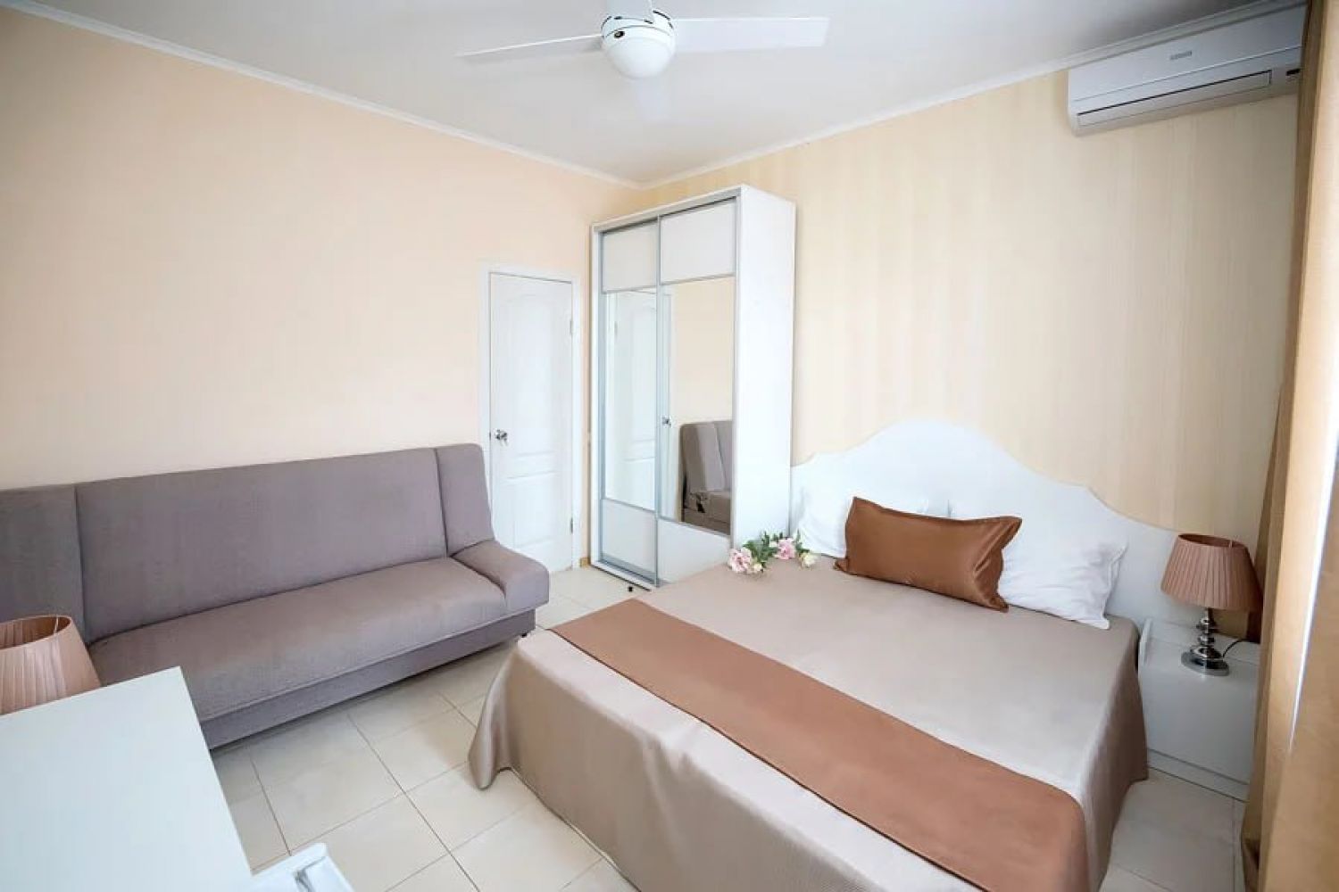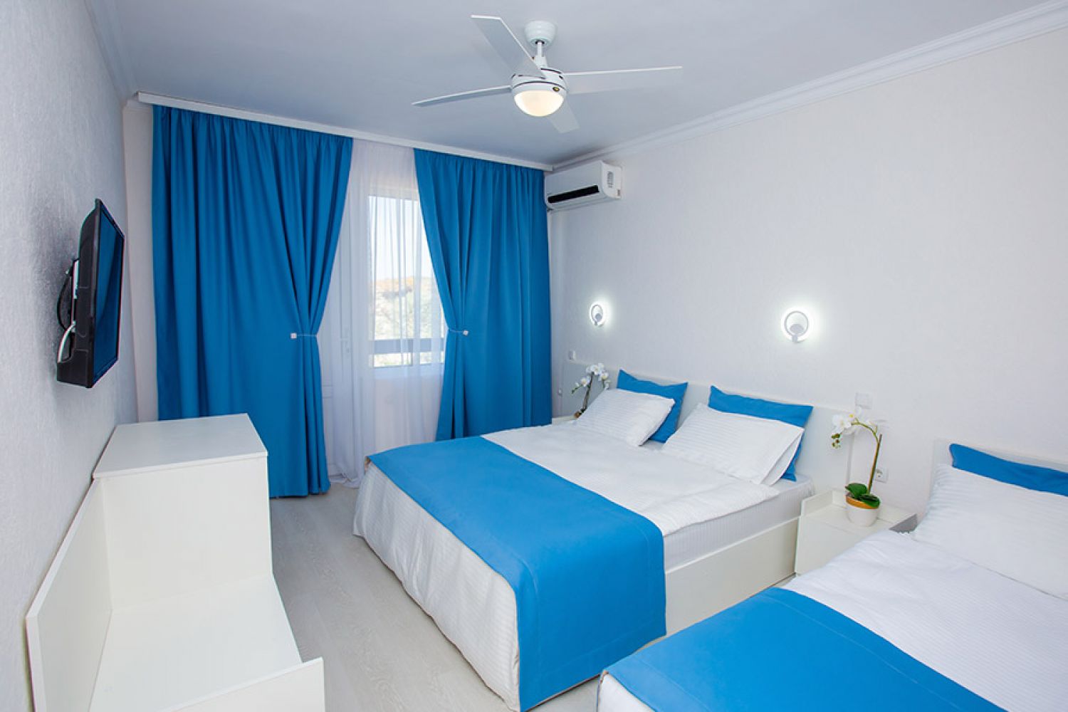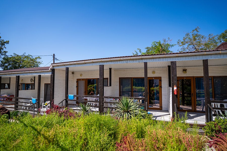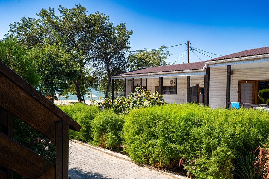 В комплексе есть все необходимое для хорошего пляжного отдыха — современный двухэтажный спальный корпус, одноэтажные домики с удобствами, столовая, аквапарк. Гостей ожидают номера разных категории — от Стандартов до Делюксов. Все номера оснащены индивидуальным санузлом с душем, кондиционером, есть плазменный телевизор и электрочайник.